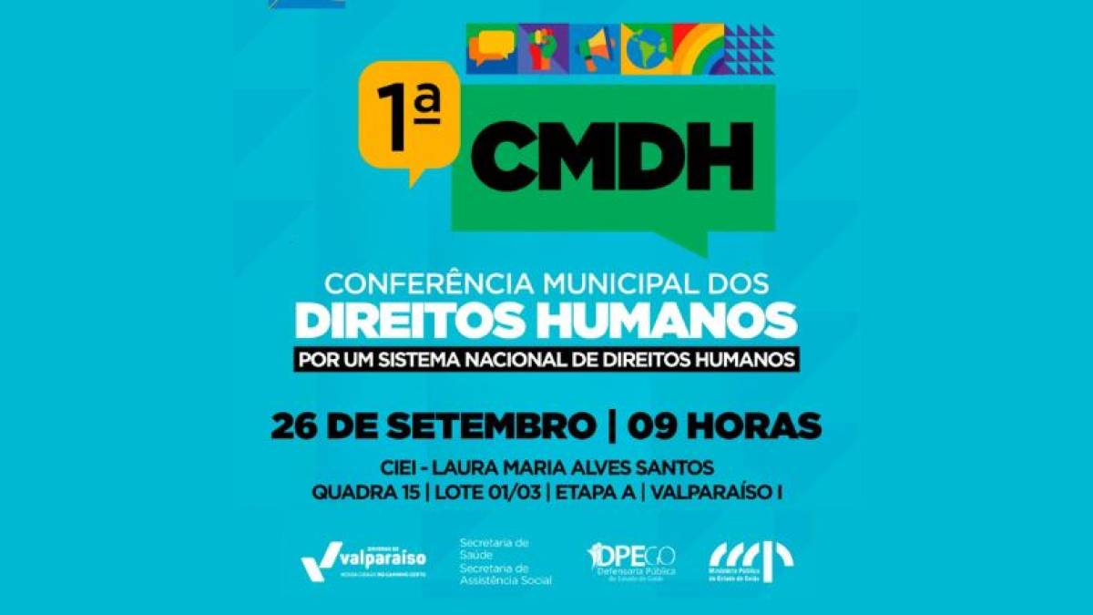 No próximo dia 26 de setembro, Valparaíso de Goiás sediará a 1ª Conferência Municipal dos Direitos Humanos, um importante espaço de diálogo e construção coletiva voltado ao fortalecimento da cidadania, à promoção da igualdade e ao respeito aos direitos fundamentais.