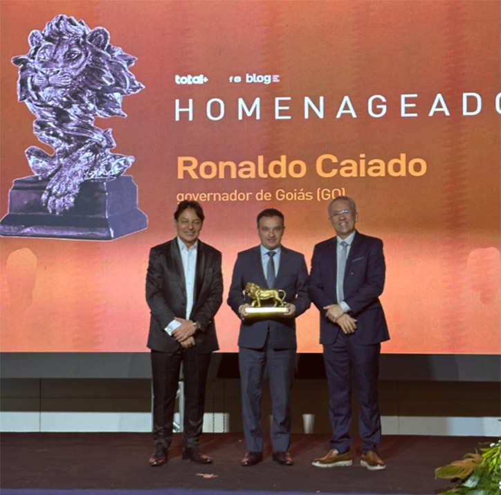 Pábio Mossoró recebe Troféu Leão Dourado em nome do Governador Caiado
