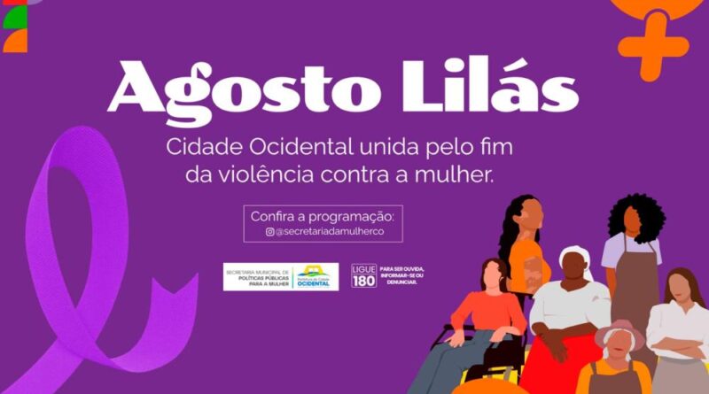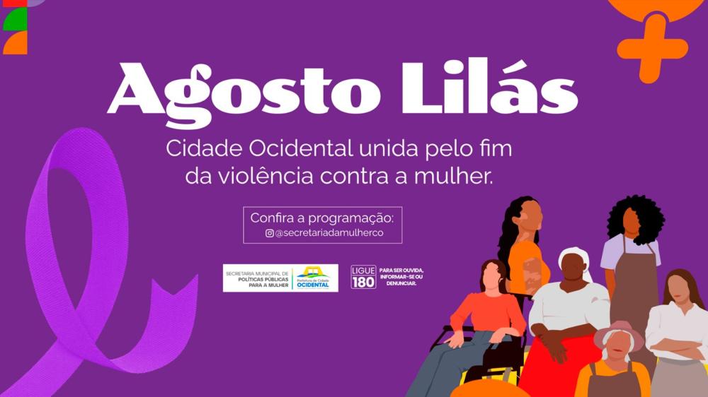 A Prefeitura de Cidade Ocidental, por meio da Secretaria Municipal de Políticas Públicas para a Mulher, realiza ao longo de todo este mês a campanha Agosto Lilás, com o tema “Cidade Ocidental unida pelo fim da violência contra a mulher”.