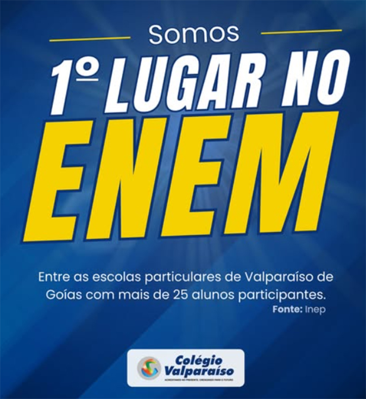 O Colégio Valparaíso, em Valparaíso de Goiás, reafirma sua tradição de excelência educacional ao conquistar o 1º lugar no Exame Nacional do Ensino Médio (ENEM) entre as escolas particulares do município com mais de 25 alunos participantes.