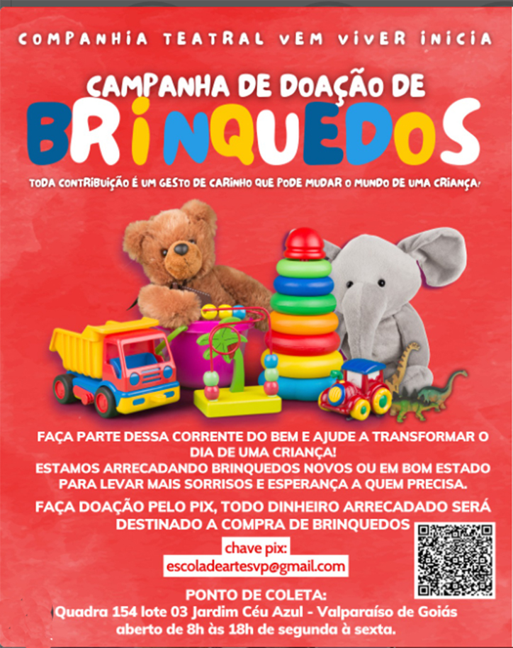 Escola de Artes Vem Viver Lança Campanha de Brinquedos para Transformar Infâncias em Valparaíso de Goiás