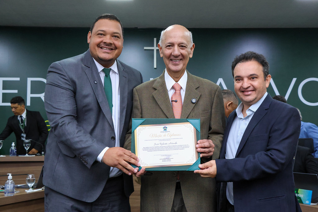 O ex-governador do Distrito Federal, José Roberto Arruda, foi homenageado com a Moção de Aplausos durante a Sessão Ordinária realizada nesta quinta-feira, 26 de fevereiro, na Câmara Municipal. A honraria, concedida pelo presidente da Casa, Walison Lacerda, foi aprovada por unanimidade pelos demais parlamentares, em reconhecimento aos relevantes serviços prestados à população e à sua trajetória pública.