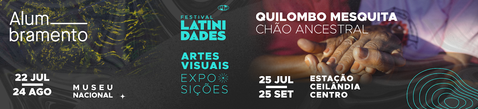 Já na Galeria 3 do Museu Nacional da República, o público será conduzido por Alumbramento, uma experiência curatorial imersiva concebida especialmente para o Festival Latinidades, a partir de um convite feito à curadora Nathalia Grilo. Com expografia assinada por Lorena Peña e Wesley Pacheco. A mostra reúne obras de 25 artistas negros, indígenas e dissidentes de diferentes gerações e regiões do país, com ênfase nos territórios historicamente excluídos do circuito hegemônico da arte: Norte, Nordeste, Centro-Oeste e sul do Brasil. A exposição vai de 23 de julho a 24 de agosto, com acesso gratuito.