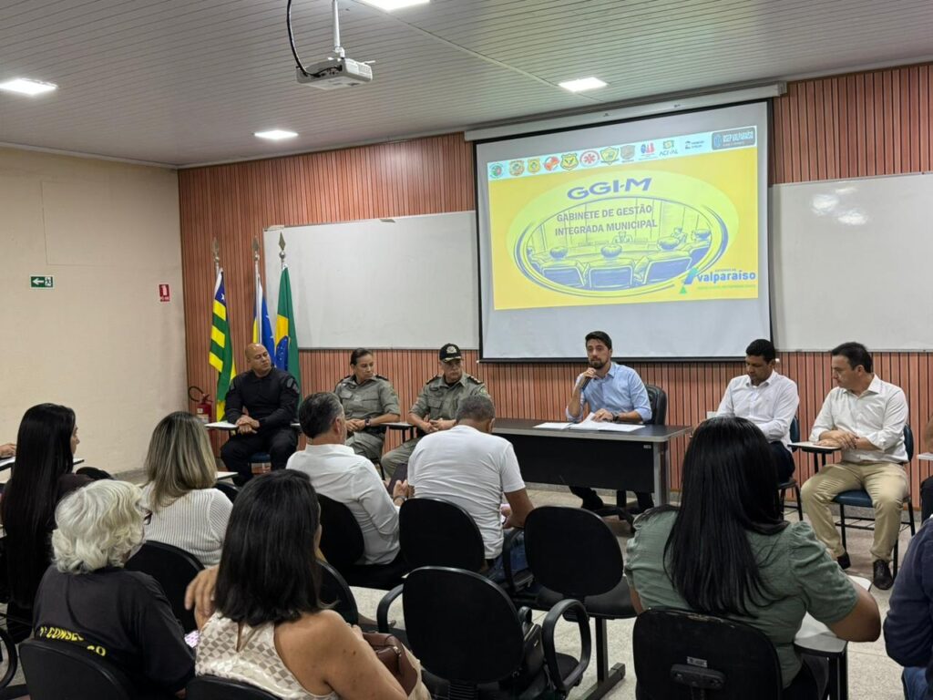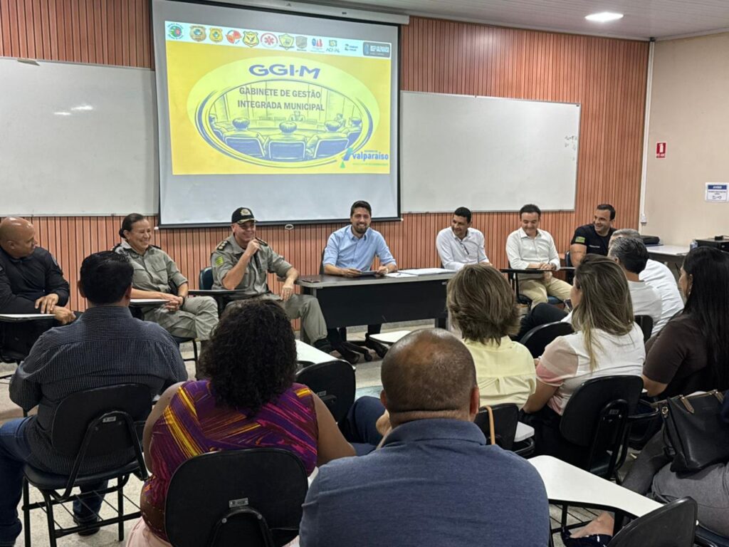 A Prefeitura de Valparaíso de Goiás realizou mais uma importante reunião do Gabinete de Gestão Integrada Municipal (GGIM), reunindo representantes da Polícia Militar, Polícia Civil, Corpo de Bombeiros Militar, Polícia Penal, Batalhão de Trânsito, secretarias municipais e conselhos comunitários. O encontro consolidou o alinhamento das ações integradas que fortalecem a segurança e a proteção social no município.