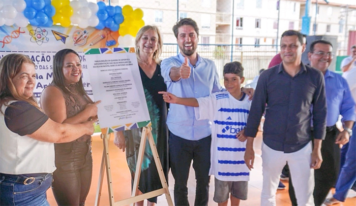 A Prefeitura de Valparaíso de Goiás realizou a entrega da quadra poliesportiva da Escola Municipal Marcus Antônio Salerno, localizada no bairro Cidade Jardins. A obra foi viabilizada com apoio de emenda da deputada estadual Zeli, e contou com a presença de autoridades municipais, entre elas a secretária de Educação, Maria Frazão, e o secretário de Infraestrutura, Waguinho do Céu Azul.