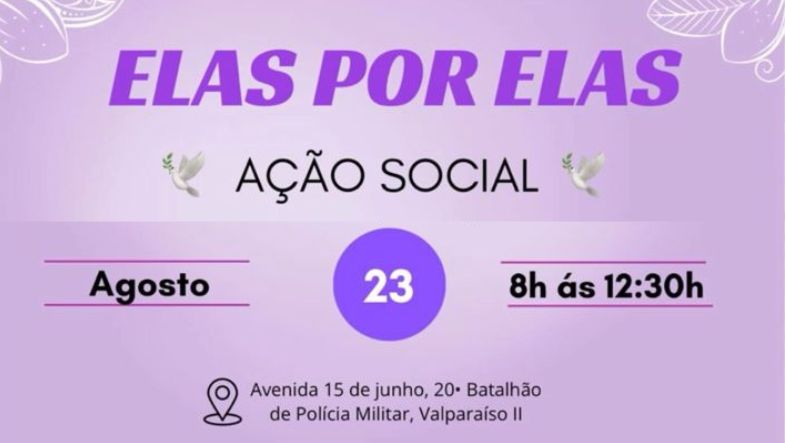 No dia 23 de agosto, das 8h às 12h30, a Patrulha Maria da Penha promoverá a ação social “Elas por Elas” em Valparaíso de Goiás. A iniciativa tem como foco oferecer atendimentos gratuitos em diversas áreas para fortalecer o acolhimento e o cuidado às vítimas de violência doméstica no município.
