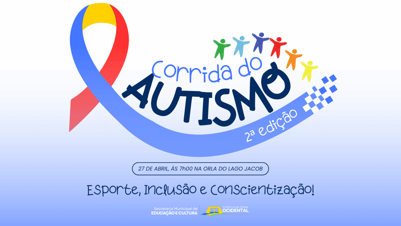 A Prefeitura de Cidade Ocidental, por meio da Secretaria Municipal de Educação e Cultura, em parceria com a Coordenadoria de Esporte e Lazer e a Coordenação Executiva de Educação Especial e Inclusiva, realizará no dia 25 de abril de 2026 a 2ª edição da Corrida do Autismo. O evento tem como objetivo promover a inclusão, a conscientização e o bem-estar de crianças e adolescentes com Transtorno do Espectro Autista (TEA).