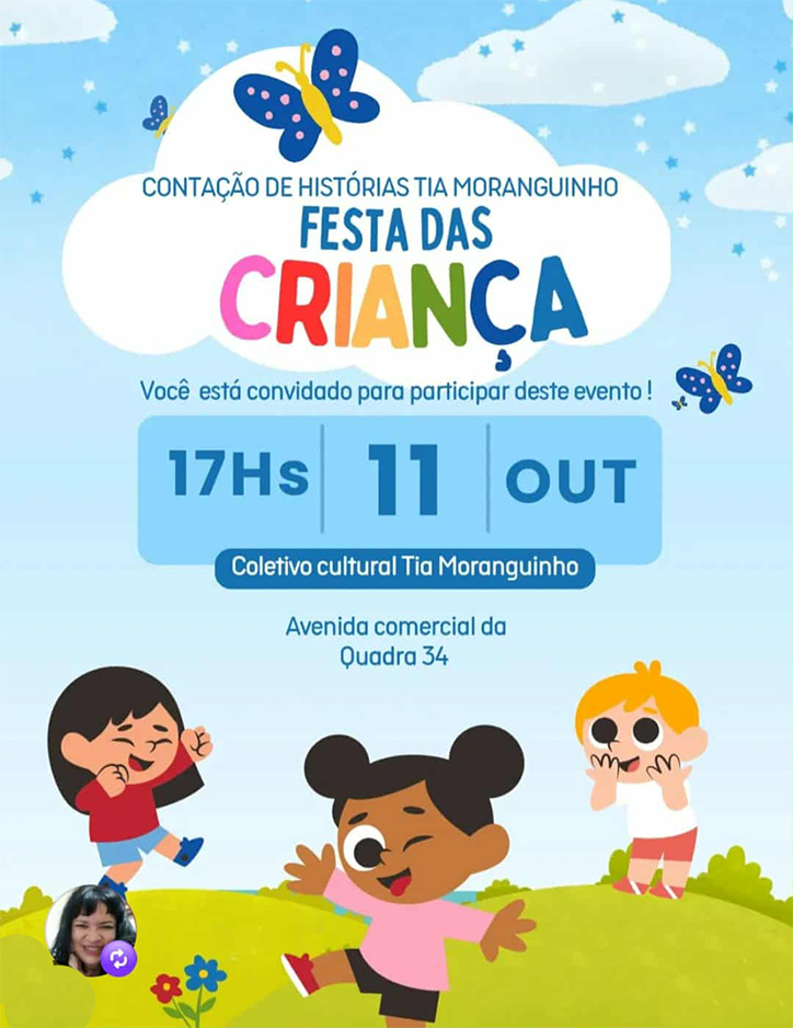 O próximo sábado, 11 de outubro, promete ser de pura magia em Valparaíso de Goiás. A partir das 17h, o Ponto de Cultura Tia Moranguinho — localizado na Quadra 34, Lote 20, Loja 02, Etapa B — será palco de uma tarde especial dedicada à criançada, com muita alegria, música e encantamento.