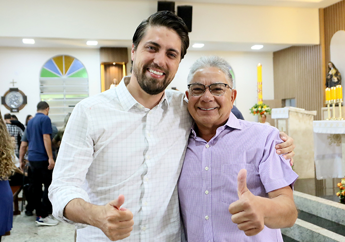 A celebração foi compartilhada por familiares do prefeito, o vice-prefeito Waguinho, deputado federal Célio Silveira, ex-prefeito Pábio Mossoró, secretários municipais, vereadores, servidores do município, amigos, populares e fiéis da paróquia, sendo conduzida pároco Frei Amilton, que abençoou o trabalho do prefeito e desejou-lhe boa saúde e muito trabalho.